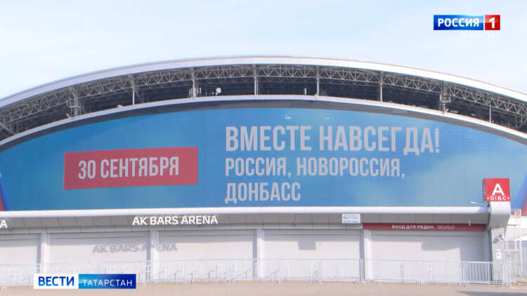 «Вместе навсегда!» — эти слова, которые, как нельзя лучше характеризуют цель и смысл политики России в новых регионах страны, появились сегодня и на медиафасаде стадиона «Ак Барс Арена».
