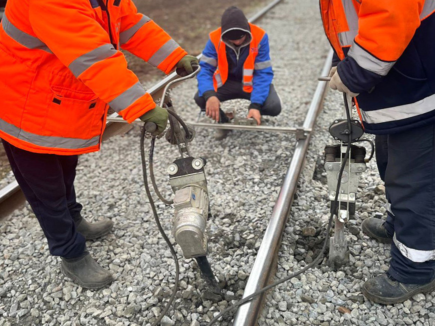 Для улучшения плавности хода трамваев специалисты наплавили 4 крестовины и провели подъемку и подбивку более 1200 метров пути.