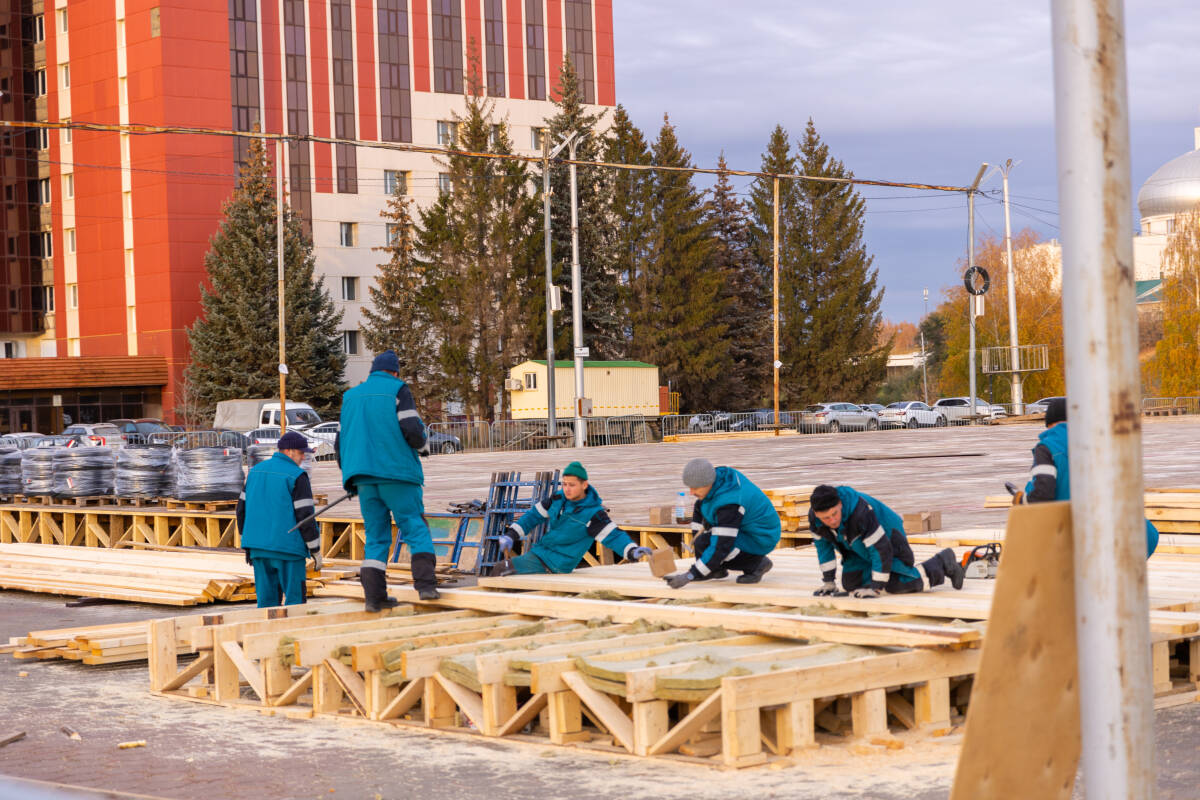 В Альметьевске началась подготовка к Новому году. Рабочие приступили к монтажу главной городской елки на площади Нефтяников. Сборка началась с основания: установлены фундаментные блоки и нижний металлический каркас.
