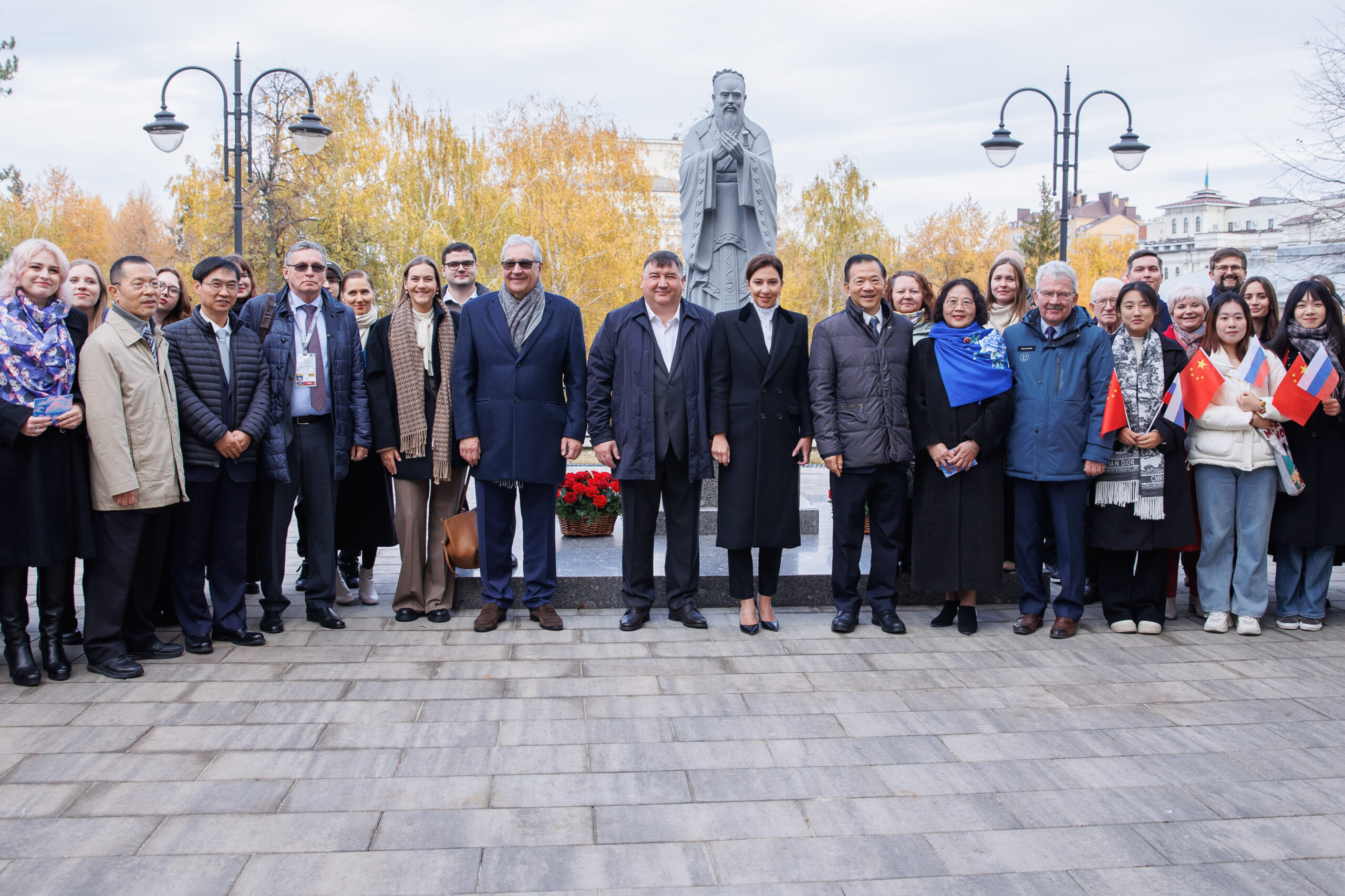 Члены делегации Китая посетили памятник Конфуцию в Казани, расположенный в сквере рядом с Казанским университетом.