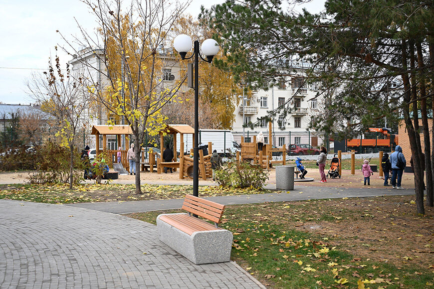 Кроме того, в парке появились 20 скамеек и 10 урн, а освещение обеспечивают 13 светильников. Работы по благоустройству также включали ремонт тротуаров и укладку плитки на площади 885 кв.м.