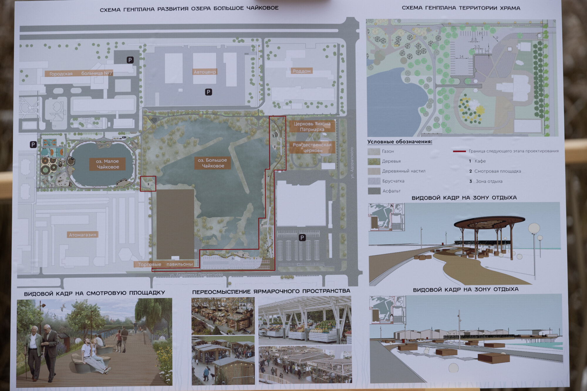 В рамках второй очереди работ в следующем году, при наличии финансирования, планируется создать комфортную пешеходную зону перед торговым центром с выходом на улицу Адоратского, реорганизовать существующую торговую зону на улице Академика Лаврентьева и проложить пешеходный маршрут от улицы Академика Лаврентьева до улицы Маршала Чуйкова между Большим и Малым Чайковыми озерами.