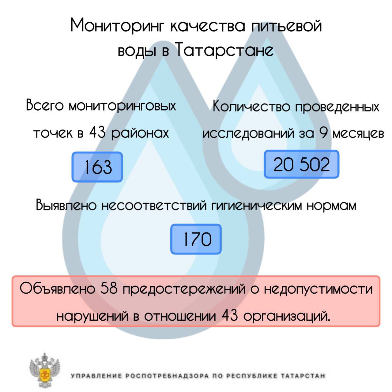В ответ на нестандартные результаты Управление приняло меры реагирования, включая промывку и дезинфекцию систем водоснабжения по предписаниям. Кроме того, было выдано 58 предостережений о недопустимости нарушений обязательных требований, касающихся 43 ресурсоснабжающих организаций.