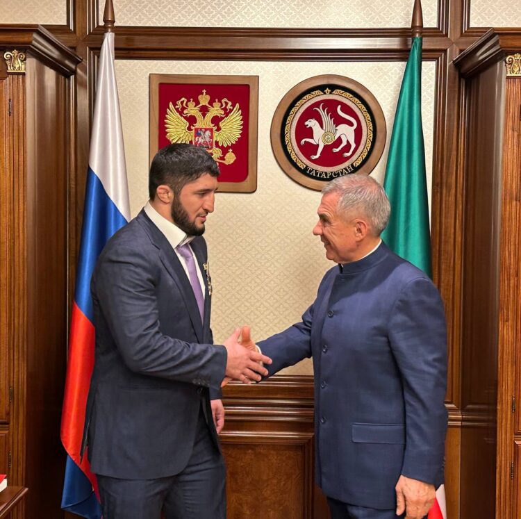 В завершение встречи Рустам Минниханов вручил Абдулрашиду Садулаеву орден «Дуслык» за заслуги в области физической культуры и спорта.