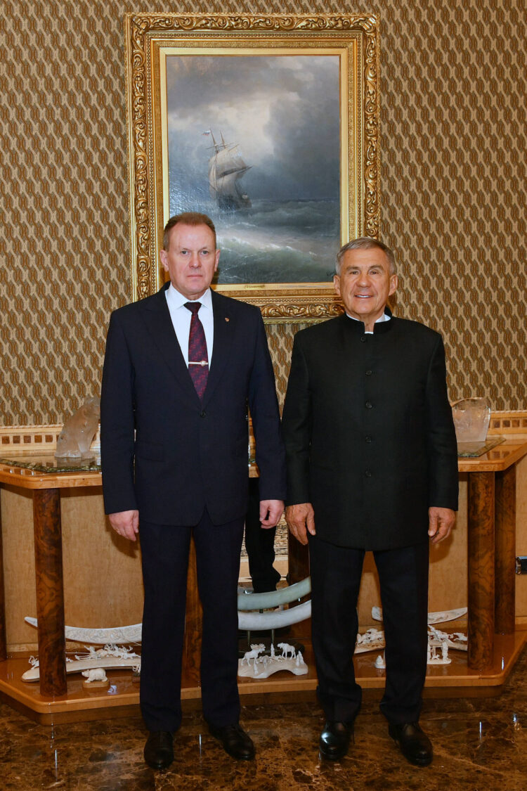 В завершение встречи Аркадий Гостев вручил Рустаму Минниханову почетную грамоту ФСИН за значительный вклад в оказание помощи при выполнении задач, возложенных на уголовно-исполнительную систему России.