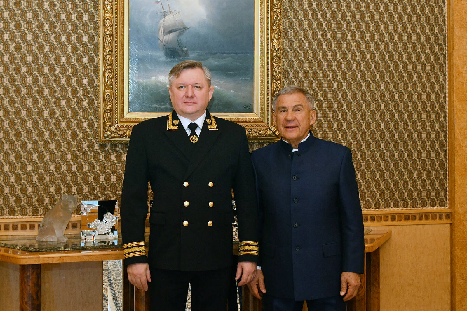 В рабочем кабинете Минниханова также присутствовали руководитель Администрации Раиса РТ Асгат Сафаров, заместитель Премьер-министра РТ и руководитель Аппарата Кабинета Министров РТ Шамиль Гафаров и другие официальные лица.