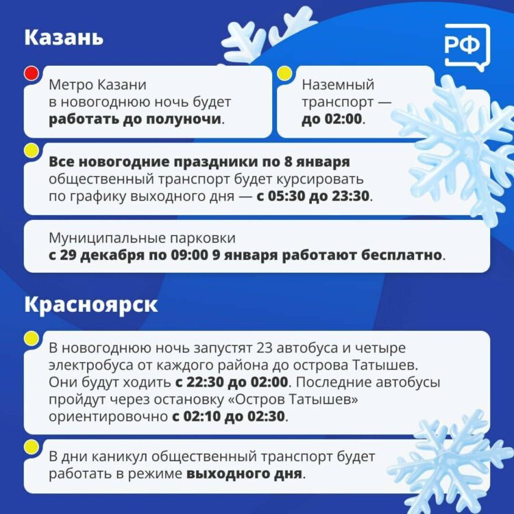 Кроме того, важно отметить, что муниципальные парковки в Казани будут функционировать без взимания платы до 9:00 9 января, что создаст дополнительные удобства для автомобилистов.