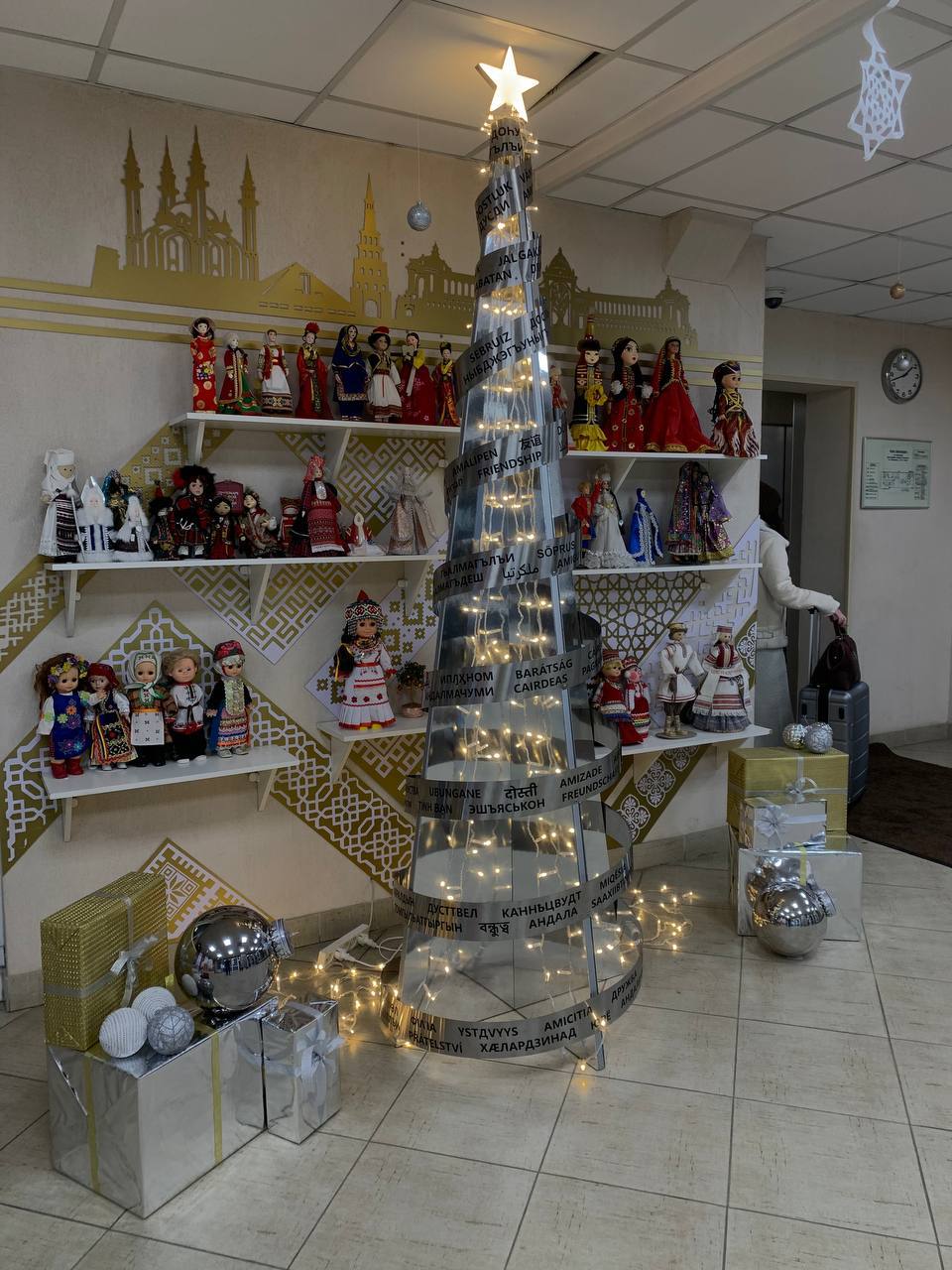 В Доме дружбы народов Татарстана установили новогоднюю инсталляцию – «Елка дружбы». Об этом сообщили в пресс-службе Минмолодежи РТ.