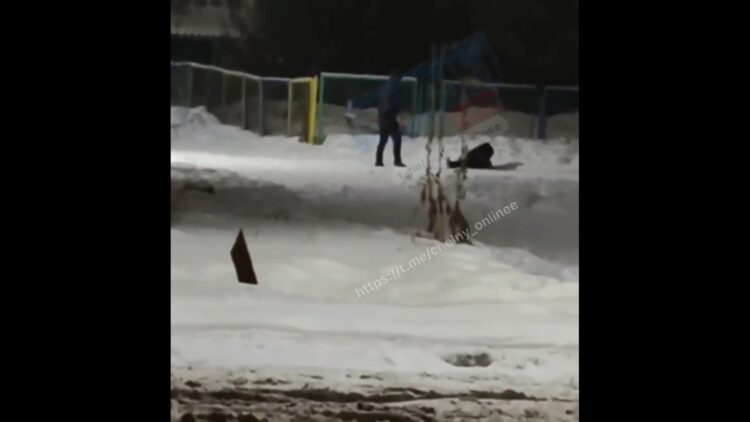 На записи видно, как мужчина удерживает мальчика, лежащего на снегу, и снова бросает его лицом вниз, когда тот пытается встать.