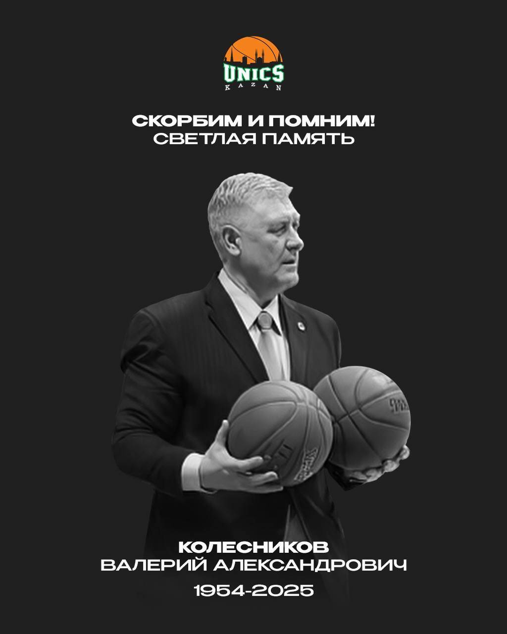 Бывший начальник команды БК УНИКС, спортивный директор молодежной команды УНИКС-2 и заслуженный тренер России Валерий Колесников скончался 16 января на 71-м году жизни. Об этом сообщает пресс-служба баскетбольного клуба в своем Телеграм-канале.