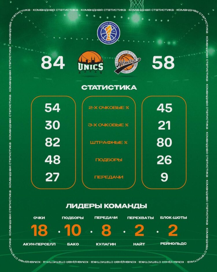 Сегодня на домашнем паркете УНИКС (Казань) разгромил «Автодор» (Саратов) со счетом 84:58, одержав 16-ю победу подряд.