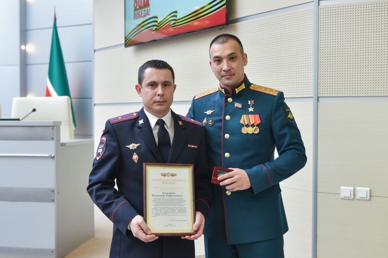 В завершение мероприятия Дамир Сатретдинов наградил отличившихся сотрудников ведомственными наградами, а Герой Российской Федерации Расим Баксиков вручил награды Государственного Совета РТ.