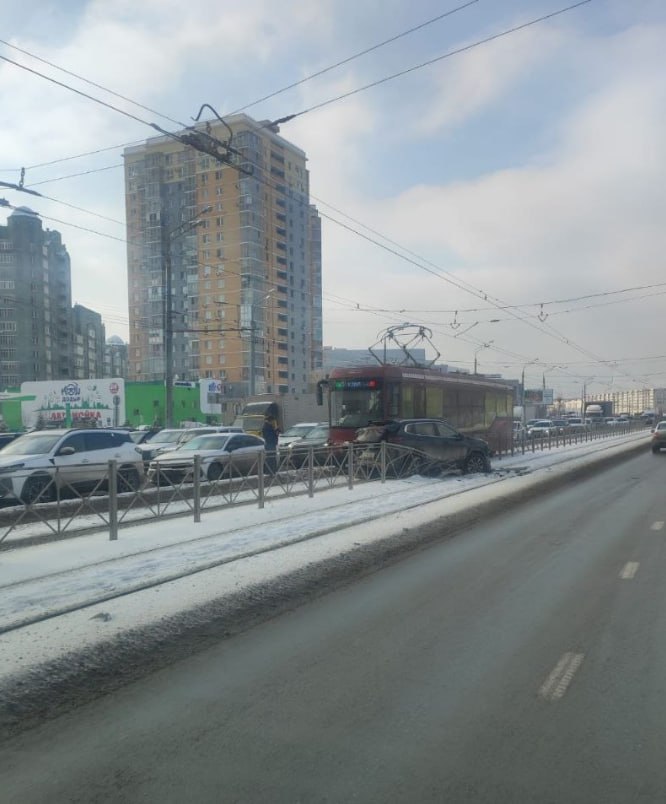 В Казани на проспекте Ямашева произошла авария: иномарка столкнулась с трамваем. Согласно видео в соцсетях, водитель выехал прямо на трамвайные пути.
