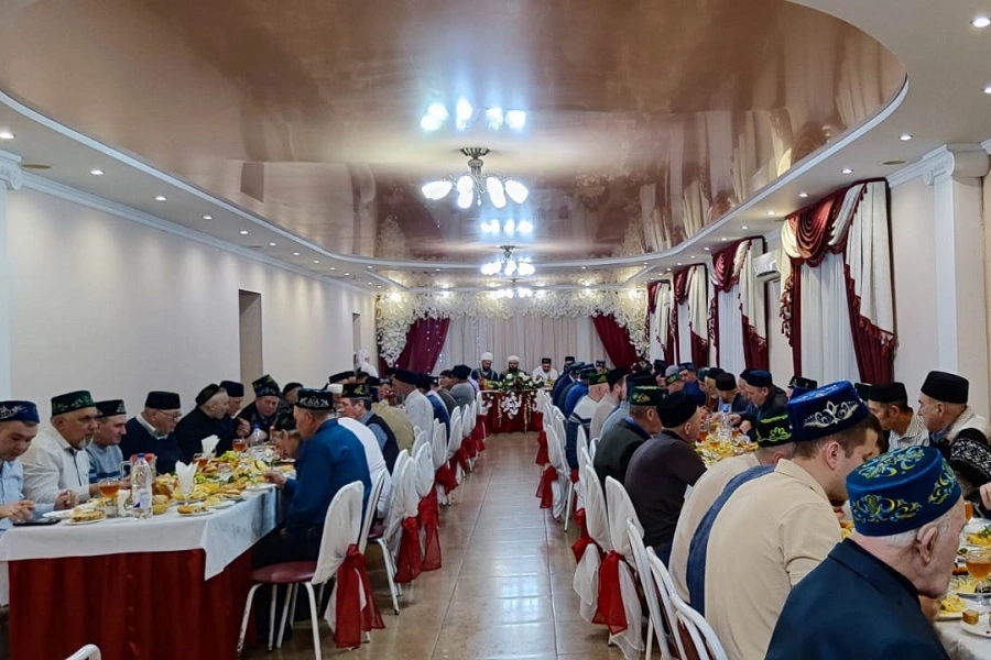 В кафе «Маяк» прошла встреча Муфтия с населением перед началом районного ифтар-маджлиса, организованного главой района. В мероприятии приняли участие 130 человек, среди которых были имамы и активные прихожане, активно участвующие в религиозной жизни мечетей.