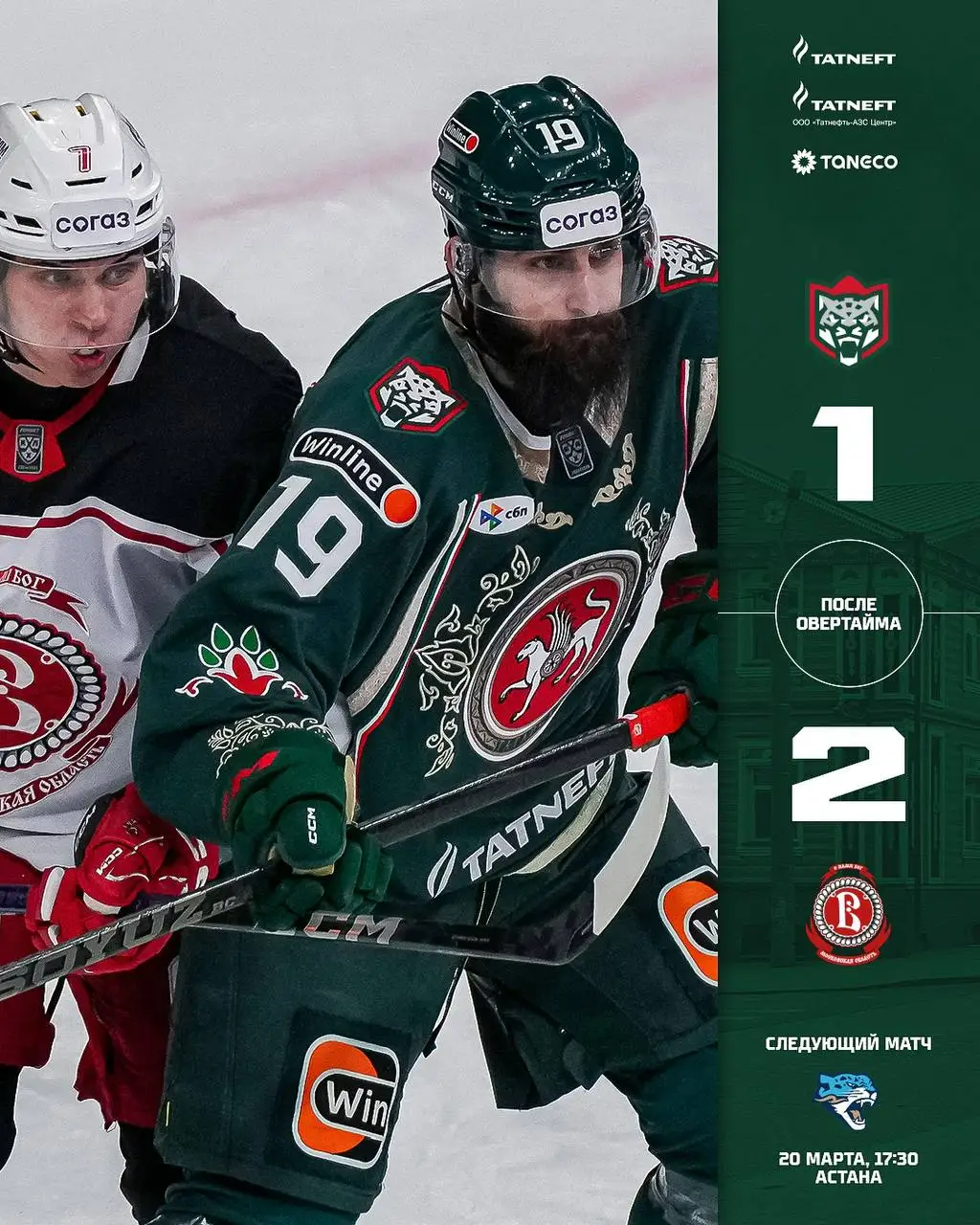 В последнем домашнем матче регулярного чемпионата казанский «Ак Барс» потерпел поражение от подмосковного «Витязя» со счетом 1:2.