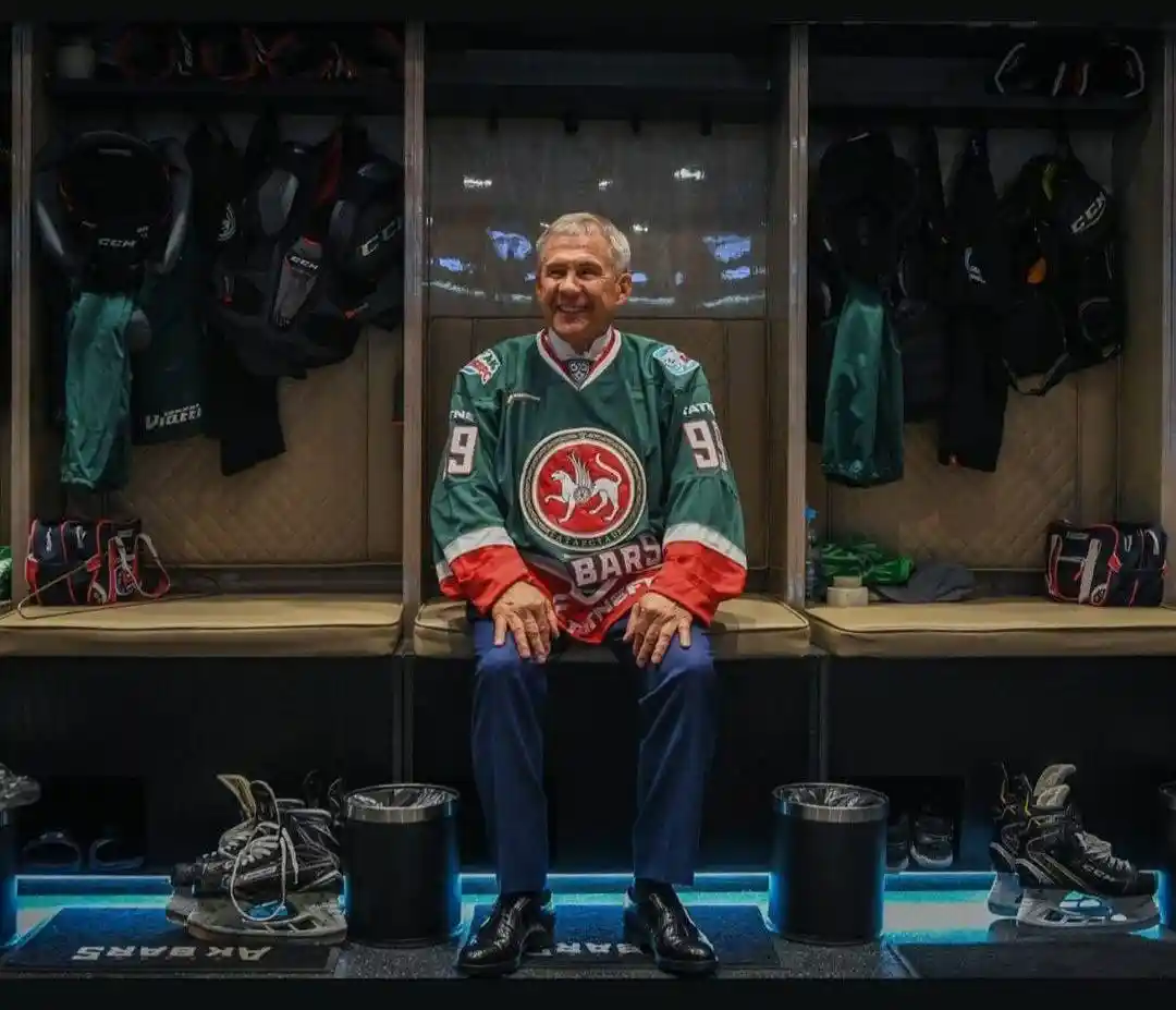 В своем телеграм-канале руководитель пресс-службы Раиса Татарстана, Лилия Галимова, опубликовала фото Рустама Минниханова в свитере хоккейного клуба «Ак Барс».