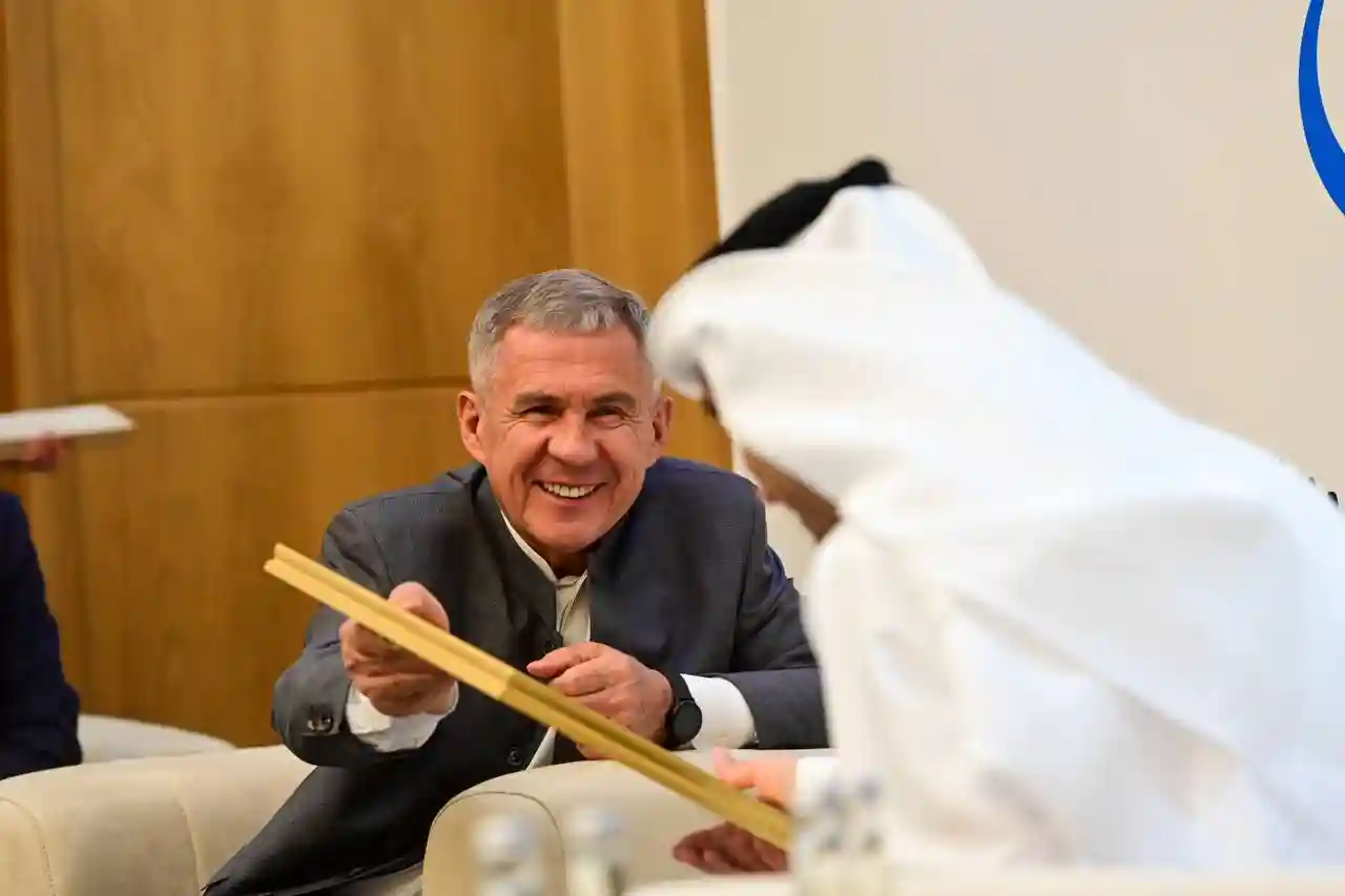 Раис Татарстана Рустам Минниханов встретился с Государственным министром по внешней торговле Объединенных Арабских Эмиратов доктором Тани бен Ахмедом Аль Зейуди. Раис республики находится в ОАЭ с рабочим визитом. Он прибыл для участия в Международном инвестиционном форуме.
