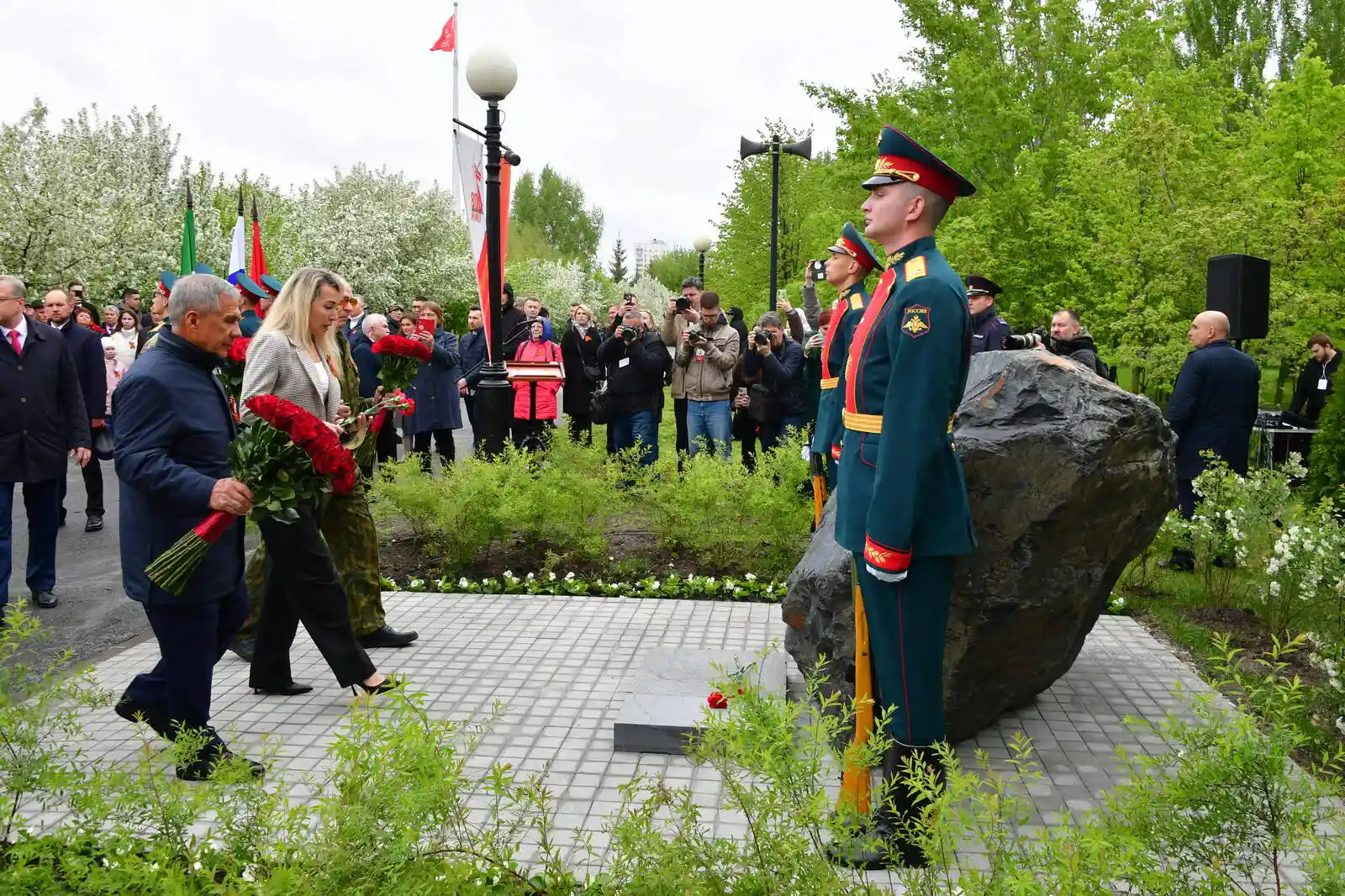 Гостей встречали представители военно-патриотического движения «Юнармия» и других общественных организаций. Участники отдали дань памяти павшим воинам, после чего прозвучали гимны России и Татарстана, а также прошел марш почетного караула.