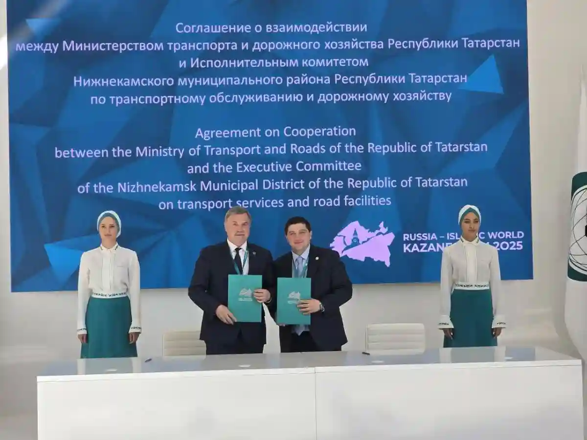 На международном экономическом форуме «Россия – Исламский мир: KazanForum» в Казани было подписано первое в республике соглашение о сотрудничестве в области транспорта и дорожного хозяйства. Документ был подписан представителями Министерства транспорта и дорожного хозяйства Республики Татарстан и исполнительным комитетом Нижнекамского района.