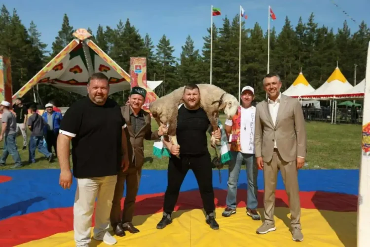 И.о. руководителя исполнительного комитета района Дамир Фаттахов поздравил победителей в каждой весовой категории и вручил абсолютному победителю главный приз праздника — барана.