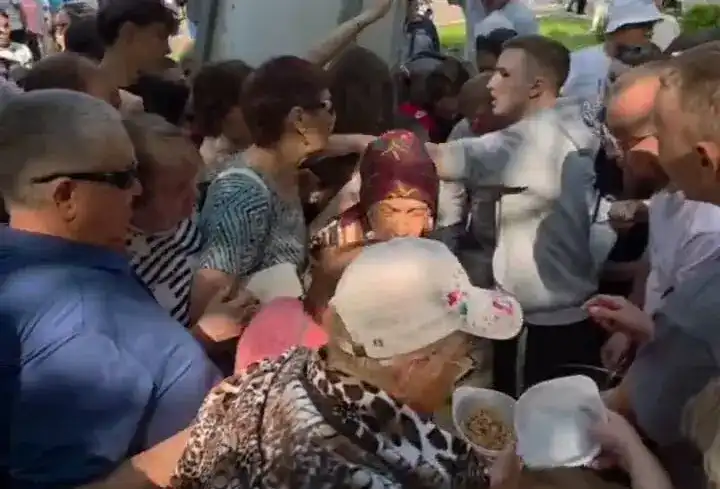 Организаторы, проводившие традиционную раздачу бесплатного плова и чак-чака, столкнулись с проблемой — у раздаточного пункта образовалась длинная очередь, что привело к толкотне. На опубликованном в соцсетях видео видно, как часть людей пыталась получить угощения вне очереди.