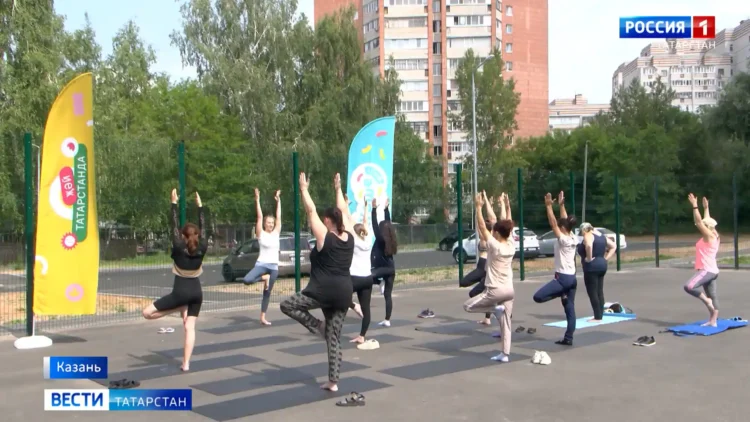 С йоги на свежем воздухе началось сегодня утро у жителей домов на улице Кул Гали — в самом большом дворе Казани, благоустроенном по программе Раиса «Наш двор». Организаторы тренировки — участники конкурса Курше фест. О том, как прошла первая утренняя зарядка расскажет Арина Рахматуллина.