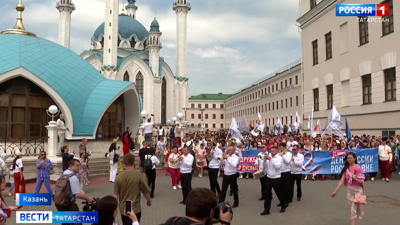 В Казани центральным местом празднования сегодня стал Кремль. Там прошёл традиционный республиканский этноконфессиональный фестиваль «Мозаика культур», а также масштабный парад Дружбы, инициированный Молодежной Ассамблеей народов Татарстана. Репортаж Дмитрия Второва.