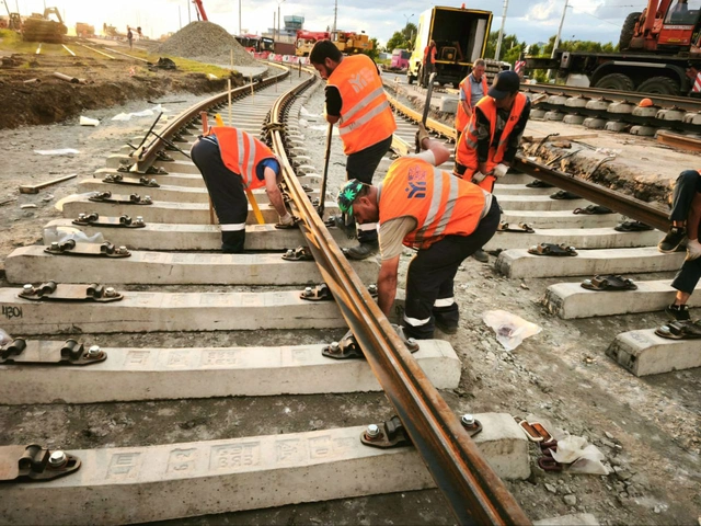 Специалисты продолжают работы на пересечении улиц Саид-Галеева и Кремлевская набережная. На данный момент завершена укладка 434 метров трамвайного пути, для чего было использовано 720 новых железобетонных шпал и 70 рельс.