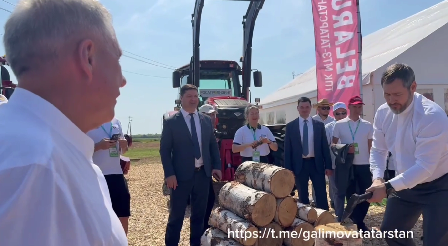 На Международной агропромышленной выставке «Агроволга 2025», которая проходит сегодня на площадке «Казань Экспо», Раис Татарстана Рустам Минниханов показал чиновникам, как правильно колоть дрова.