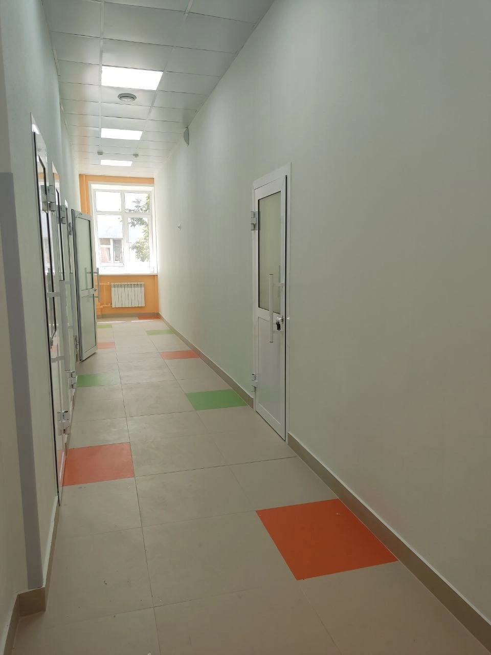 В здании открыли современную лабораторию, заменили окна и обновили входную группу. По просьбам родителей рядом с входом обустраивают крытую колясочную.