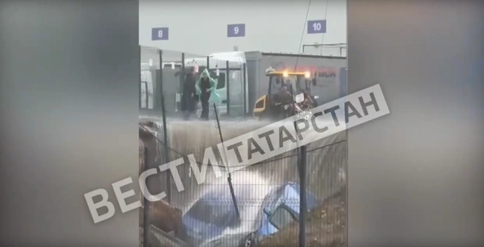 Парковку возле склада Wildberries в Новой Туре размыло после сильного дождя — три машины провалились под землю.