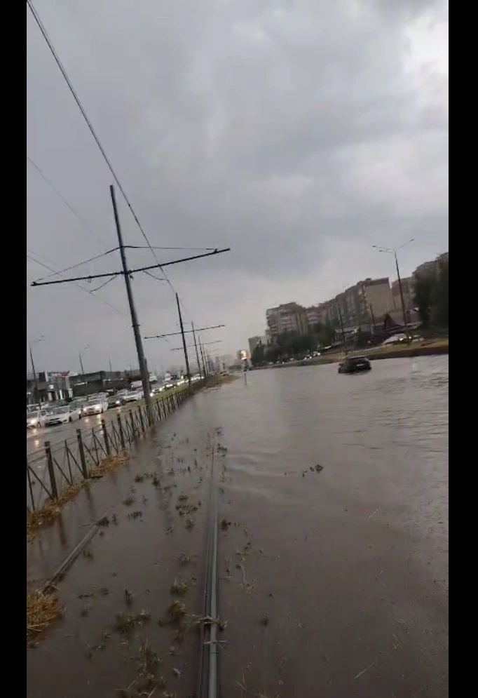 В Казани из-за сильного дождя и подтопления участка дороги между остановками «Губкина» и «Тектоник» временно приостановлено движение трамваев маршрутов 5, 5а и 7.