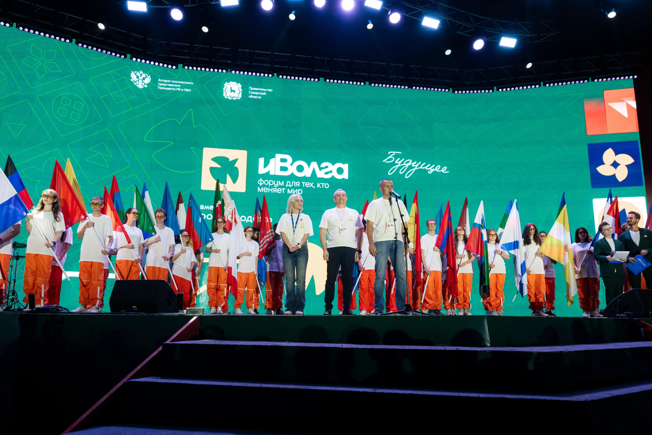 Открытие форума состоялось на главной сцене и началось с парада делегаций из регионов Приволжского федерального округа. Центральным событием стало торжественное включение арт-объекта «Машина времени» — символа запуска сюжетной игры, которая поможет участникам глубже познакомиться с историческим наследием России. Эта игра ляжет в основу образовательной программы «иВолги-2025».