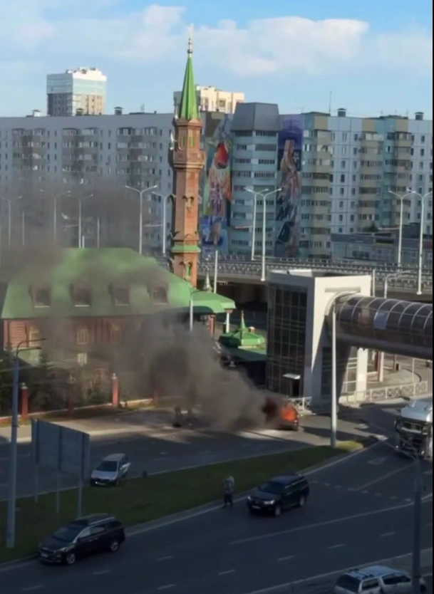 В Казани на перекрестке улиц Чистопольская и Амирхана после ДТП загорелся автомобиль Chevrolet Lacetti. Видео с места происшествия появилось в соцсетях.