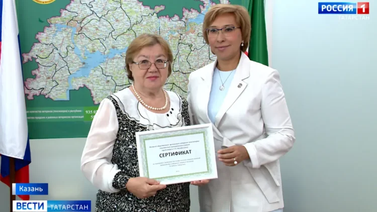 Самым активным ветеранским организациям из 10 районов Татарстана вручают сертификаты. С помощью них они могут приобрести современные компьютеры и оргтехники. Среди тех, кто поедет в родной район с подарком и Гульнур Насибуллина – председатель совета ветеранов (пенсионеров) Апастовского района.
