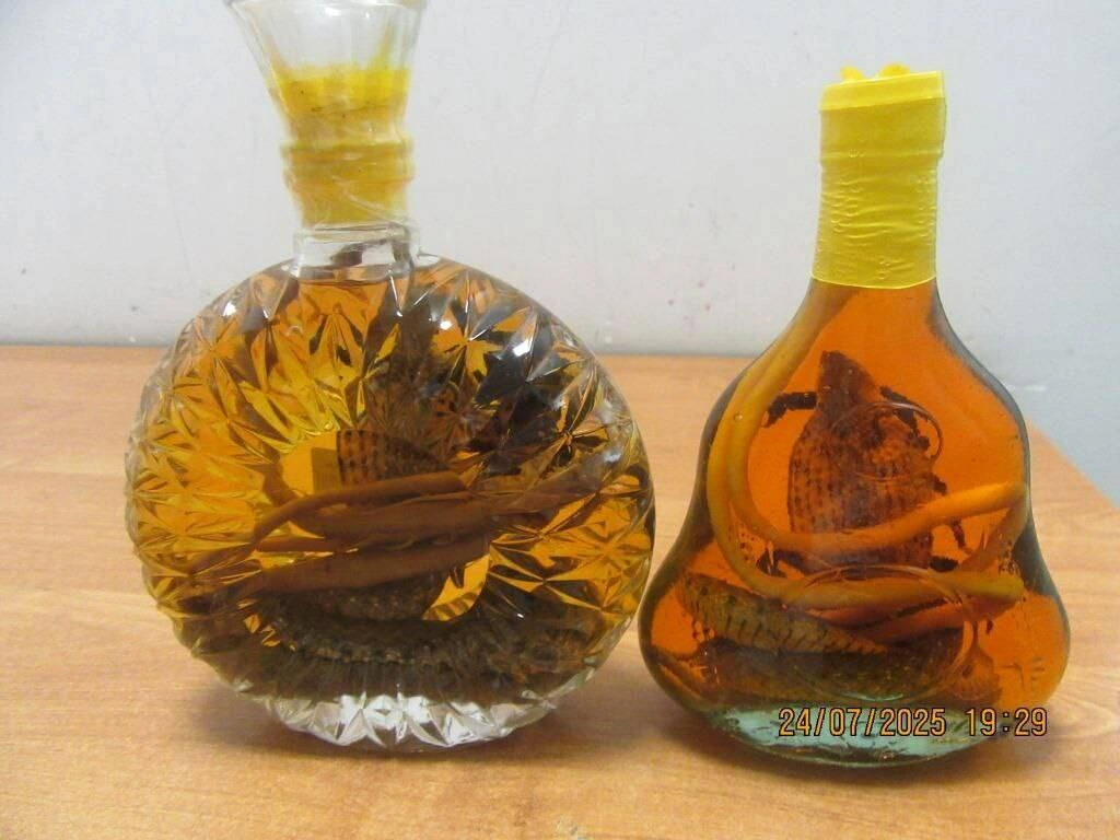 Поскольку в найденном экзотическом напитке могли содержаться рептилии, включенные в список животных и растений, охраняемых Конвенцией о международной торговле дикими видами, бутылки направили на экспертизу.