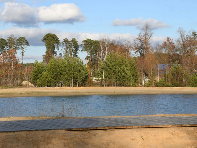 Чем хорошо: живописное место с доступом к чистой озерной воде, рядом лес и прогулочные дорожки.