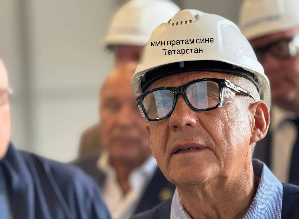 На голове у Минниханова была белая каска с надписью: «Мин яратам сине, Татарстан» («Я люблю тебя, Татарстан!»).
