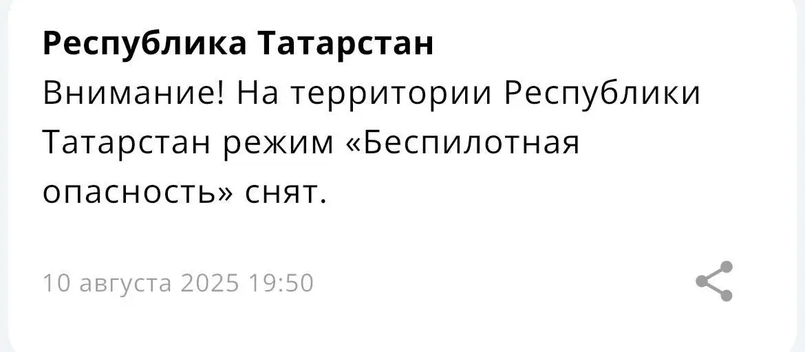 В Татарстане снят режим «Беспилотная опасность». Об этом сообщили в МЧС России.
