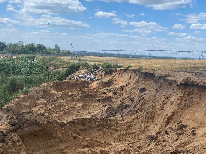 По данным проверки, на участке осуществлялась незаконная добыча общераспространенных полезных ископаемых (ОПИ), предположительно глины. Кроме того, территория использовалась для нелегального складирования строительных отходов от сноса и разборки зданий.