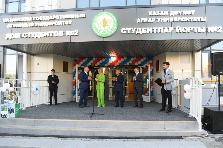 Раис Татарстана Рустам Минниханов и министр сельского хозяйства РФ Оксана Лут приняли участие в торжественном открытии нового общежития Казанского государственного аграрного университета. В мероприятии также участвовали вице-премьер РТ Марат Зяббаров и врио ректора Ильшат Нуриев. Об этом сообщили в пресс-службе Раиса РТ.