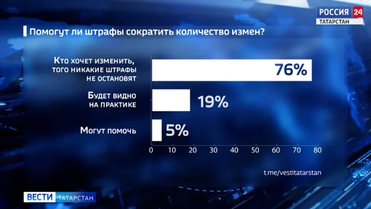 Остановит ли любителей адюльтеров штраф в 15-20 тысяч рублей – пока неизвестно. По данным опроса в наших социальных сетях. Только 5 процентов респондентов верят в действенность законопроекта, 19 процентов ждут результата на практике и большинство убеждены, что изменщиков такие санкции не напугают.