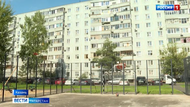 Во дворе дома на Фатыха Амирхана 41, на дружеском футболе — вратари не нужны. Все из-за новой коробки. При всем желании, ни один мяч забить не получится.