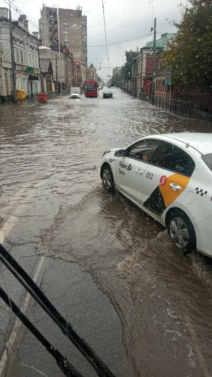 Сегодня утром в Казани временно приостановлено движение трамваев по маршрутам №1, №2, №3, №5, №5а и №7 из‑за сильного дождя и подтопления.
