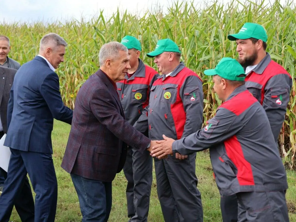 В районном центре Рустам Минниханов встретился с механизаторами, занятыми на уборке урожая, руководителями агропредприятий и главами сельских поселений.