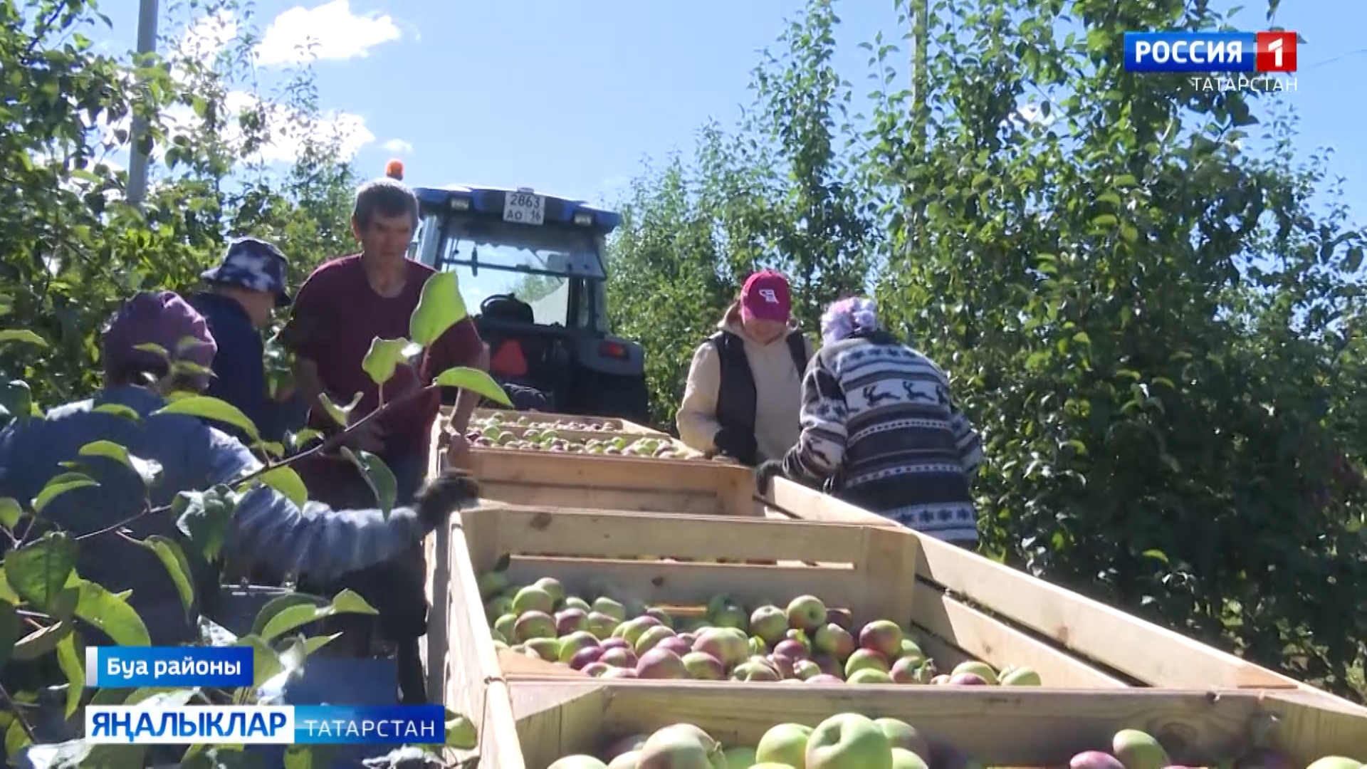Ә Бик –Үтидә Дәүләтшиннар бакчасында соңгы алмалар өлгергән чак. Алмалар 30 гектар тирәсе мәйдан били. Алты гектарында яшь алмагачлар. Җимешләрне җыюда дүрт агрегат катнаша. Һәрберсендә алтышар кеше. Дәүләтшиннар уңышны коры көннәрдә җыеп бетерергә тырышалар. Эшче куллар бер дә артык түгел, диләр.