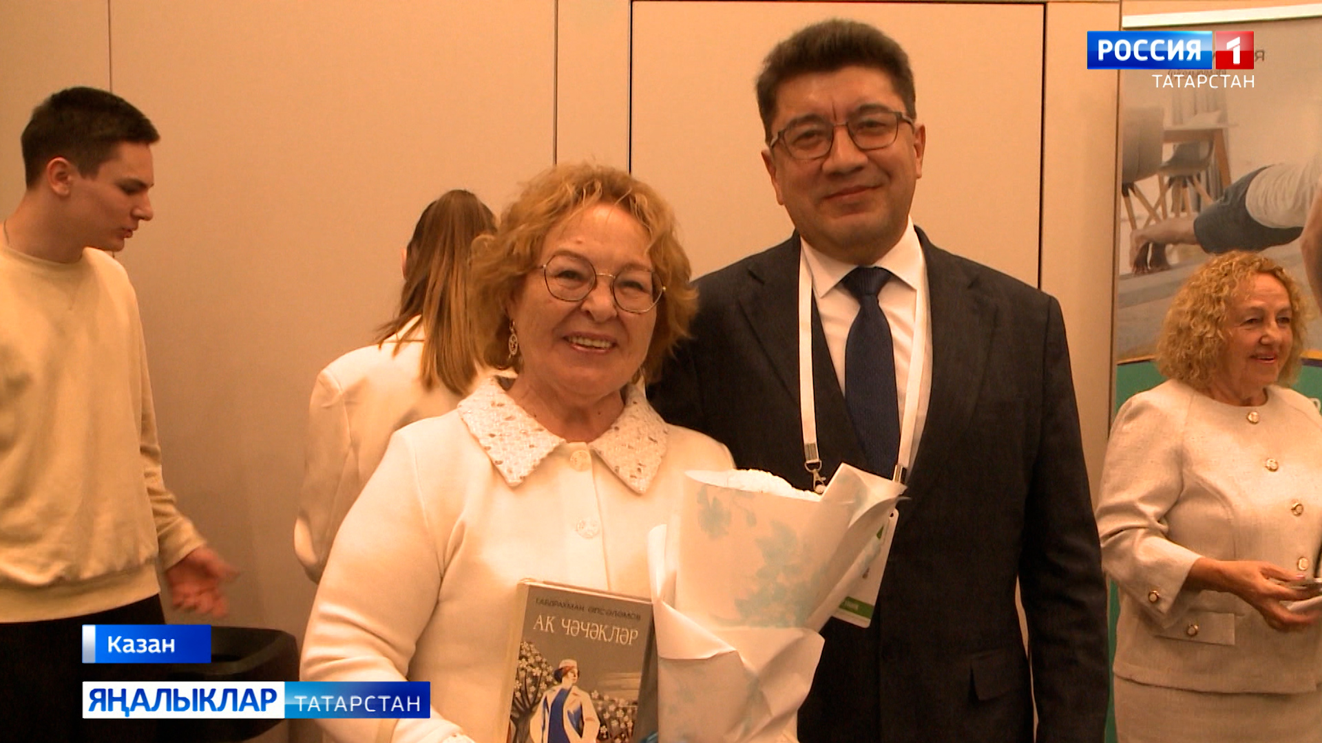 Равия ханымның күңеле шул кадәр киң, үзен хөрмәтләп килгән катнашучыларга күчтәнәч әзерләгән, яңа, ике телдә дөнья күргән китабын килгән кунакларына бүләк итте.