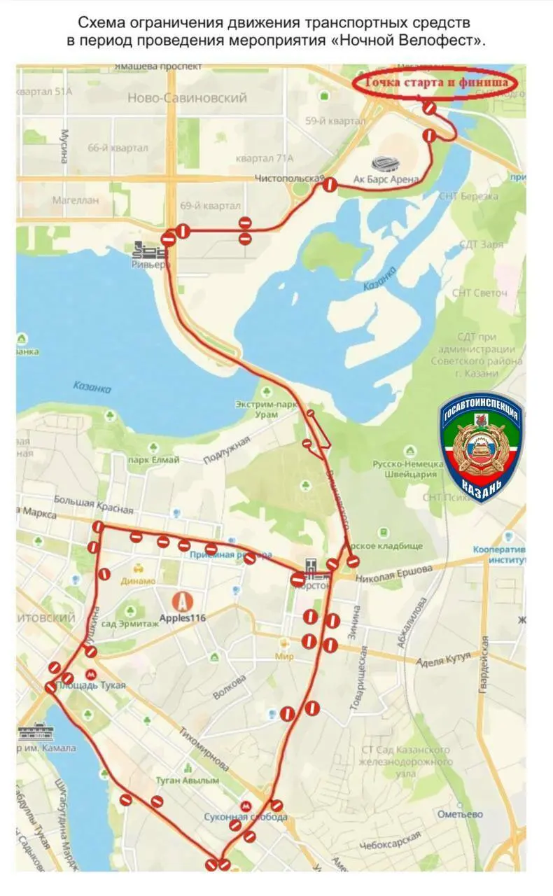 Ограничения будут действовать с 19:00 27 сентября до 03:00 28 сентября на улицах Амирхана, Чистопольской, Вишневского, Николая Ершова, Карла Маркса и Чехова.