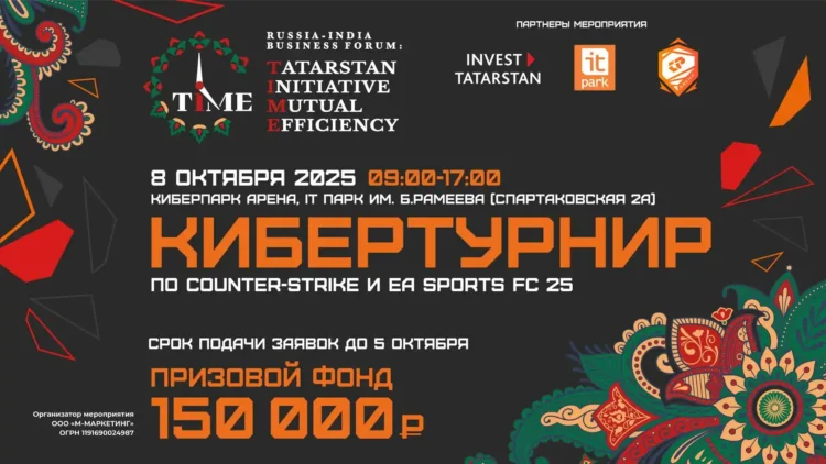 8 октября в Казани стартует первый бизнес-форум «TIME: Россия – Индия. Взаимная эффективность», в рамках которого пройдет киберспортивный турнир по Counter-Strike 2 и EA Sports FC 25 (FIFA 25) с призовым фондом 150 000 рублей.