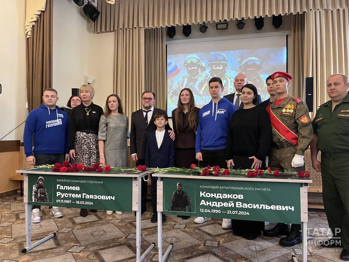 Сегодня в гимназии №3 Казани состоялось открытие двух «парт героя» в честь командира артиллерийского расчета Андрея Кондакова и ефрейтора Рустема Галиева, погибших в специальной военной операции. Мероприятие организовали представители партии «Единая Россия» и активисты «Молодой гвардии Единой России», при поддержке Комитета по делам детей и молодежи Казани.